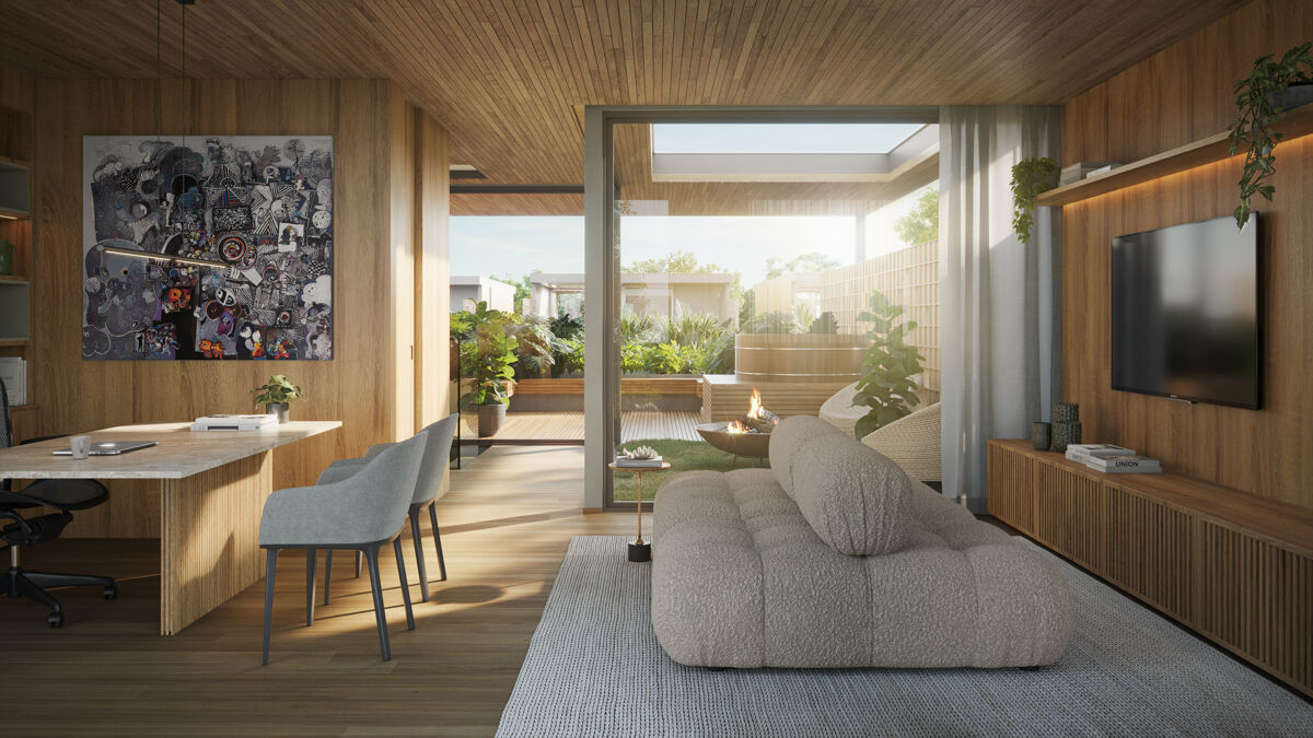 Cada residência é uma composição fluida entre espaços abertos, luz natural e materiais nobres.