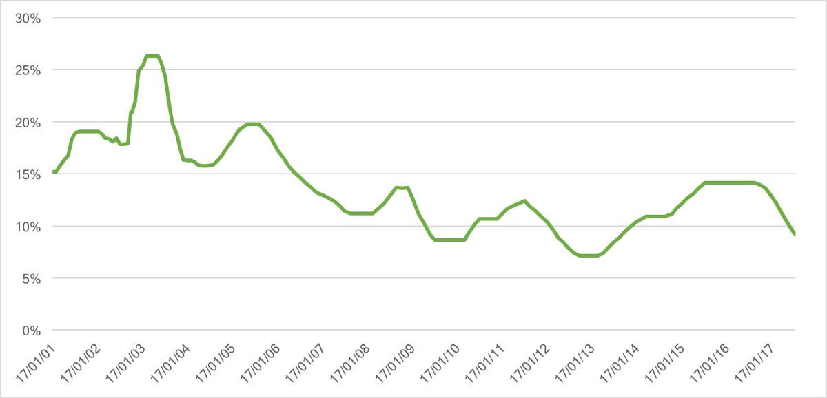 - A projeção para 2026 é de forte queda, com taxa entre 9% e 8,5%